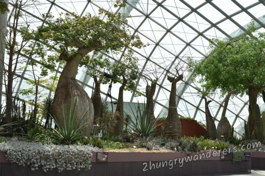 The Flower Dome has a cool-dry climate and a larger area, so it is a permanent home to some pretty cool flowers and trees, including baobabs and some very old olive trees. In addition some temporary exhibitions are hosted inside, we were lucky to be there for the Cherry Blossom Festival.
