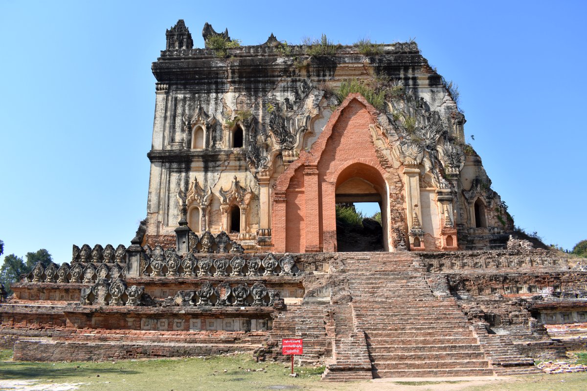 A rare remnant of the Ava period, this 1822 brick temple has an exquisite stucco exterior, beautiful and quite photogenic from every angle. The main floor chambers are mostly empty but for a couple of Buddha images, but provide cool air behind the thick temple walls.