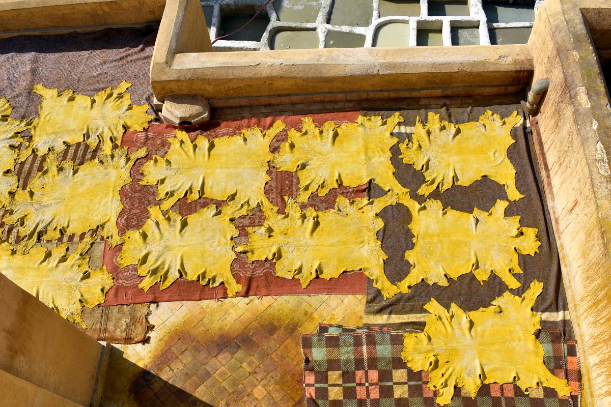 Our guide explained how things work - first the raw skins are soaked in urine to soften them, then excess fur and bits are removed, then the pieces depending on their quality, thickness and source go through different treatments and finally are being dyed and dried before moving them to the workshop.