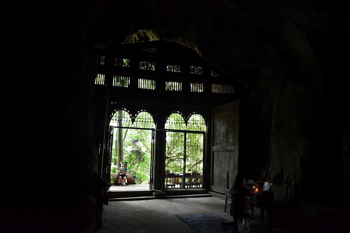 After the whiskey village stop and some more time on the river we got to Pak Ou. I will be honest here and say that we enjoyed the whole tour, but found the caves a bit underwhelming. There are two caves - upper and lower, both very shallow. The upper one has a kind of interesting door and a lot of broken small Buddha statues inside. The lower one is also filled with Buddha statues in various state of decay and that's it. It is an interesting place where people have been going to worship their deities for hundreds, or maybe even thousands of years before Buddhism, starting with a shrine to the water spirits, but there isn't really much to see. The nature is stunning however, with great views of the Mekong and the limestone mountains on the other side of the river.