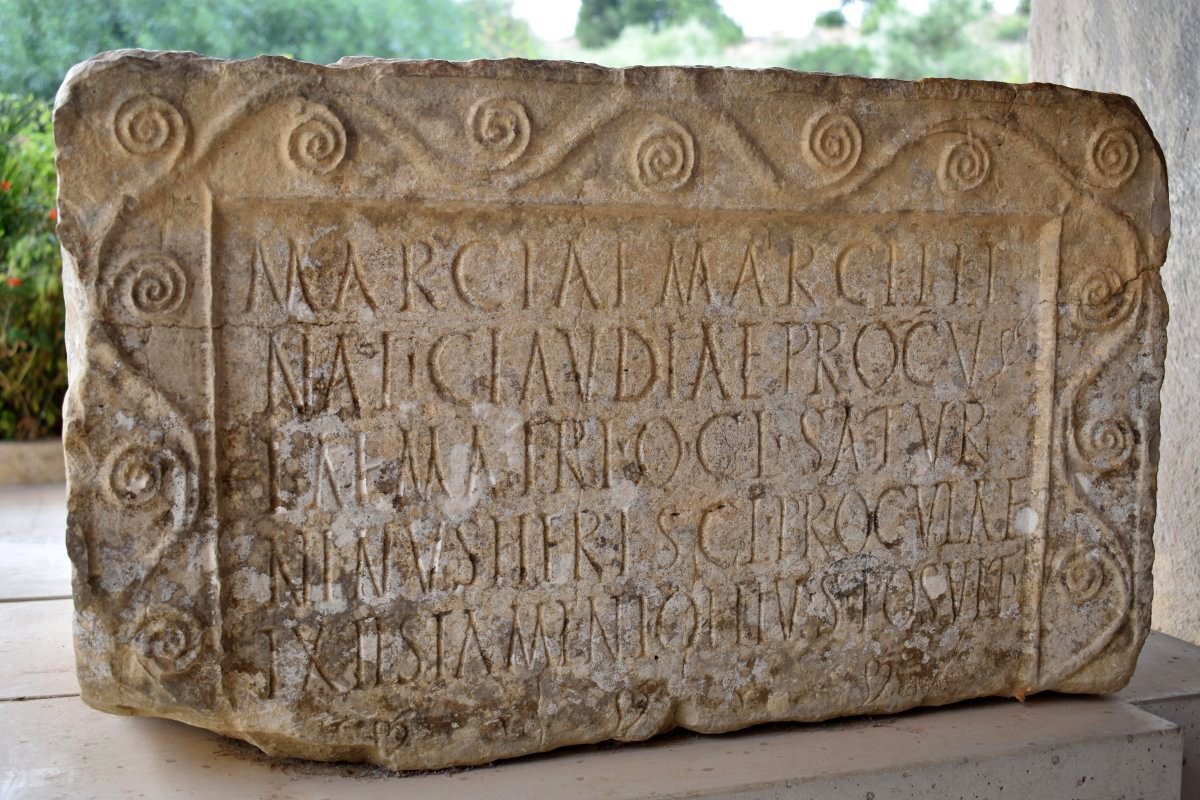 Getting close one can easily see why the area attracted so many different civilizations throughout the centuries - rich, fertile agricultural land that is still covered in wheat crops, olive and almond tree plantations. Some of the main buildings can be seen even before entering the enormous complex, so excitement levels rise early. Right after the entrance there is a small museum with both indoor and outdoor exhibits. Inside, well presented displays tell the story of the place and also give insight into culture, religion, economy and other aspects of the daily life, outside are some of the best preserved inscriptions from various ages. It is a good idea to explore the museum first and then the city, but due to darkening clouds we left it for last and went straight to the ruins before the coming rain.
